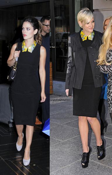 Sometimes a small detail can make all the difference in a garment. This Preen dress is all about the collar. Rachel Bilson was seen wearing the Preen Resort 2012 dress back in October while leaving the NBC studios. She wore the dress with a Chanel bag and ShoeMint heels. Ashlee Simpson was recently seen in the same dress while she was out and about with her sister Jessica. Ashlee chose to wear hers under a black jacket and open toe ankle boots.